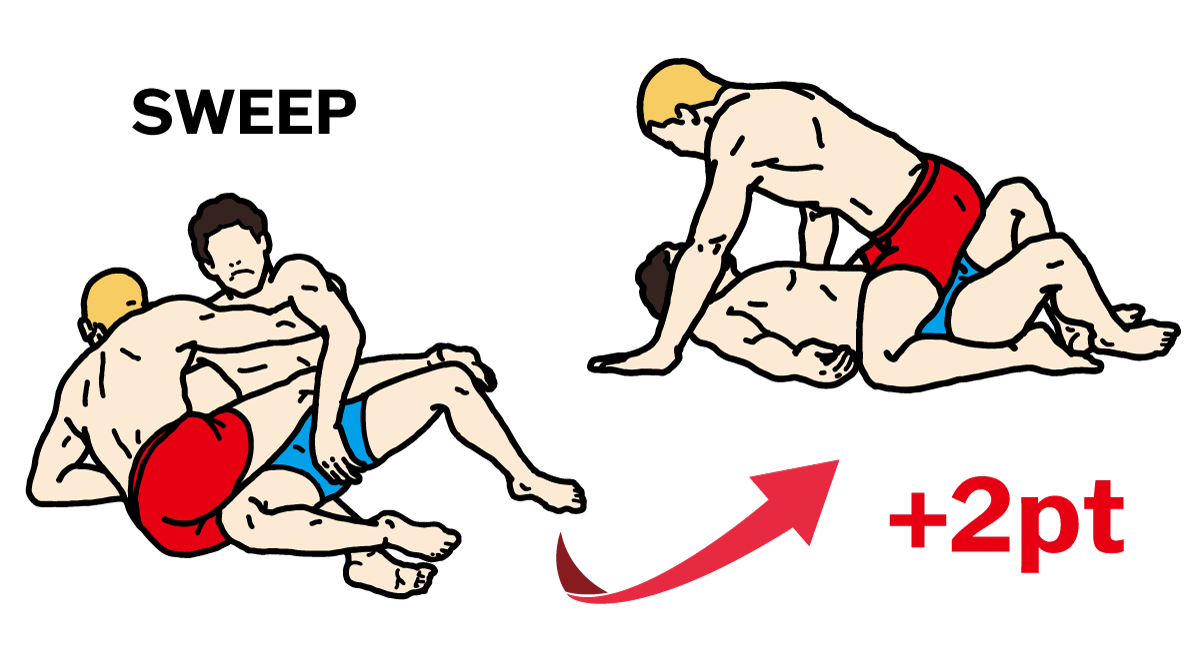 ガードポジション、もしくは抑え込まれた選手が何らかのアクションでトップポジションに入れ替わり、且つ3秒以上キープした場合、+2ポイントが付与されます。ブラジリアン柔術のルールと違い、ガードポジションからでなくとも有効です。
